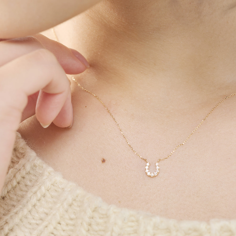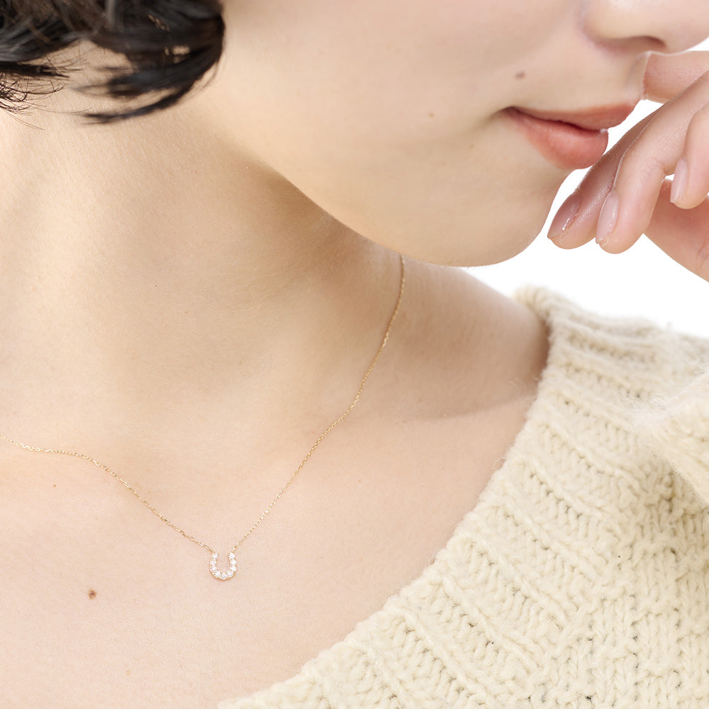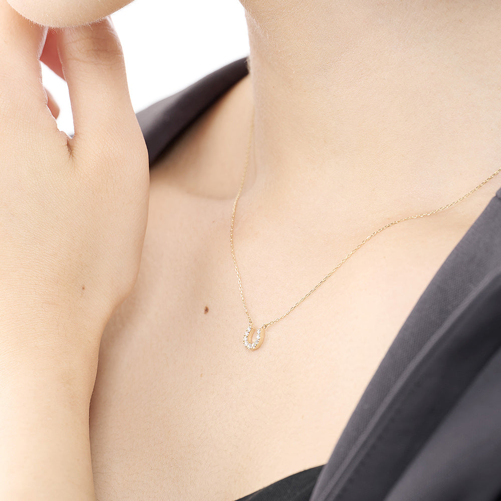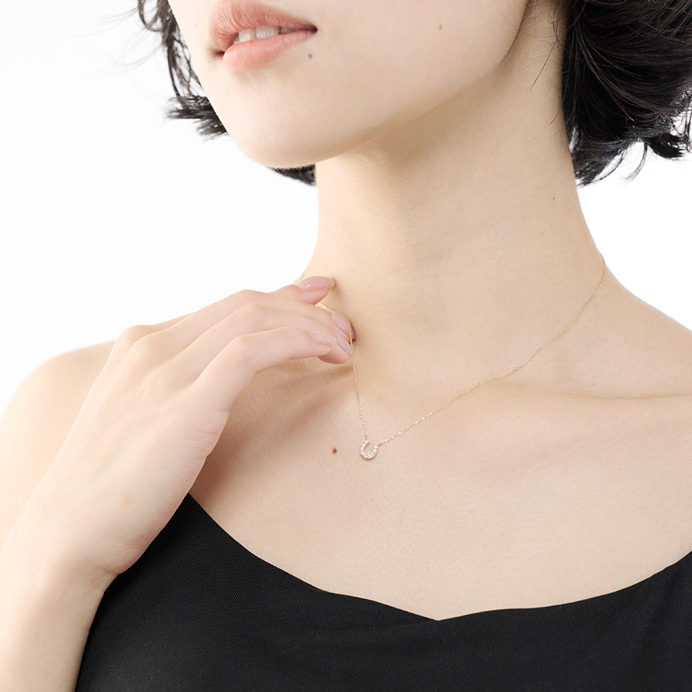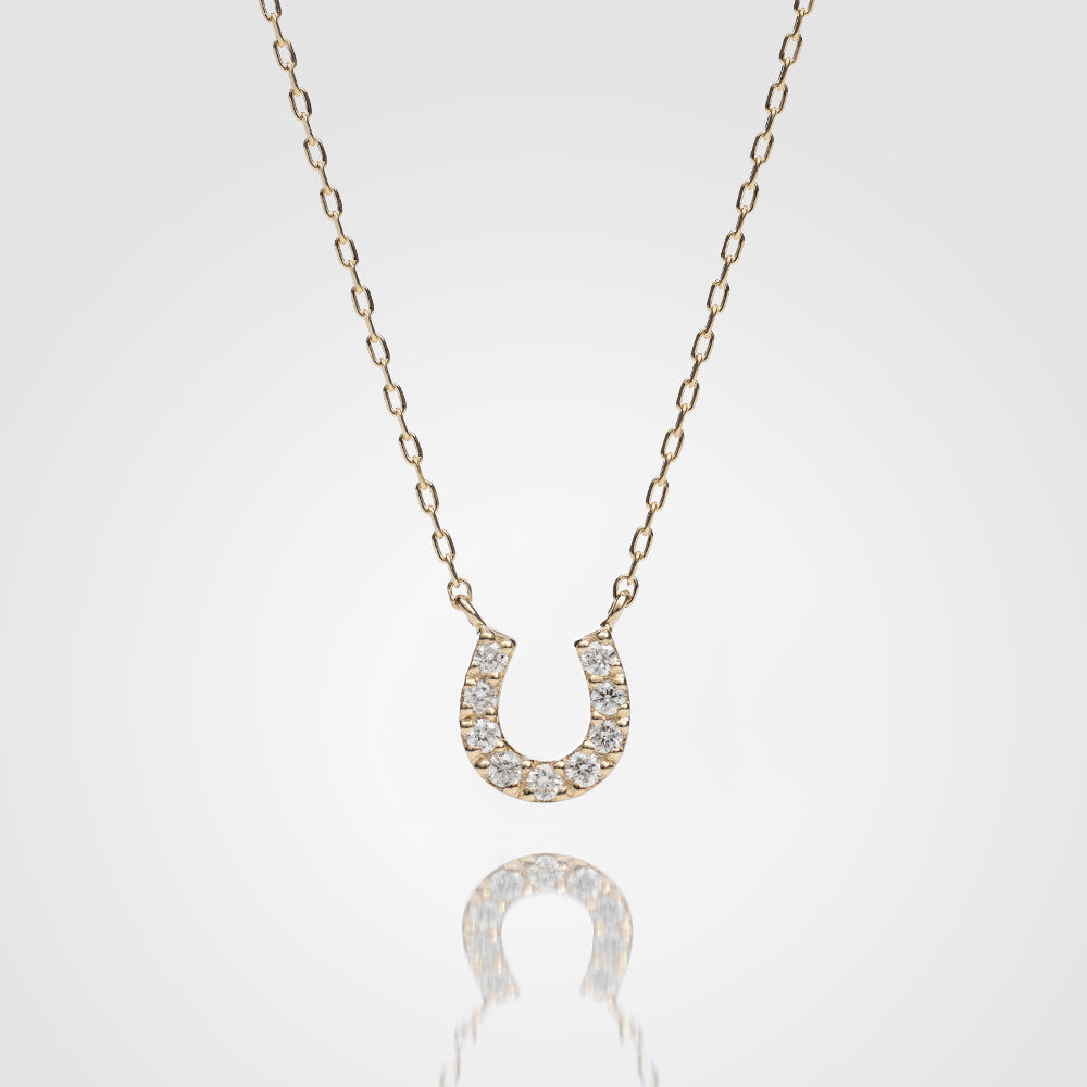 幸運を呼び込むモチーフとして愛されるホースシュー(馬蹄)を、温かみのあるK10イエローゴールドで贅沢に仕立てたネックレス。