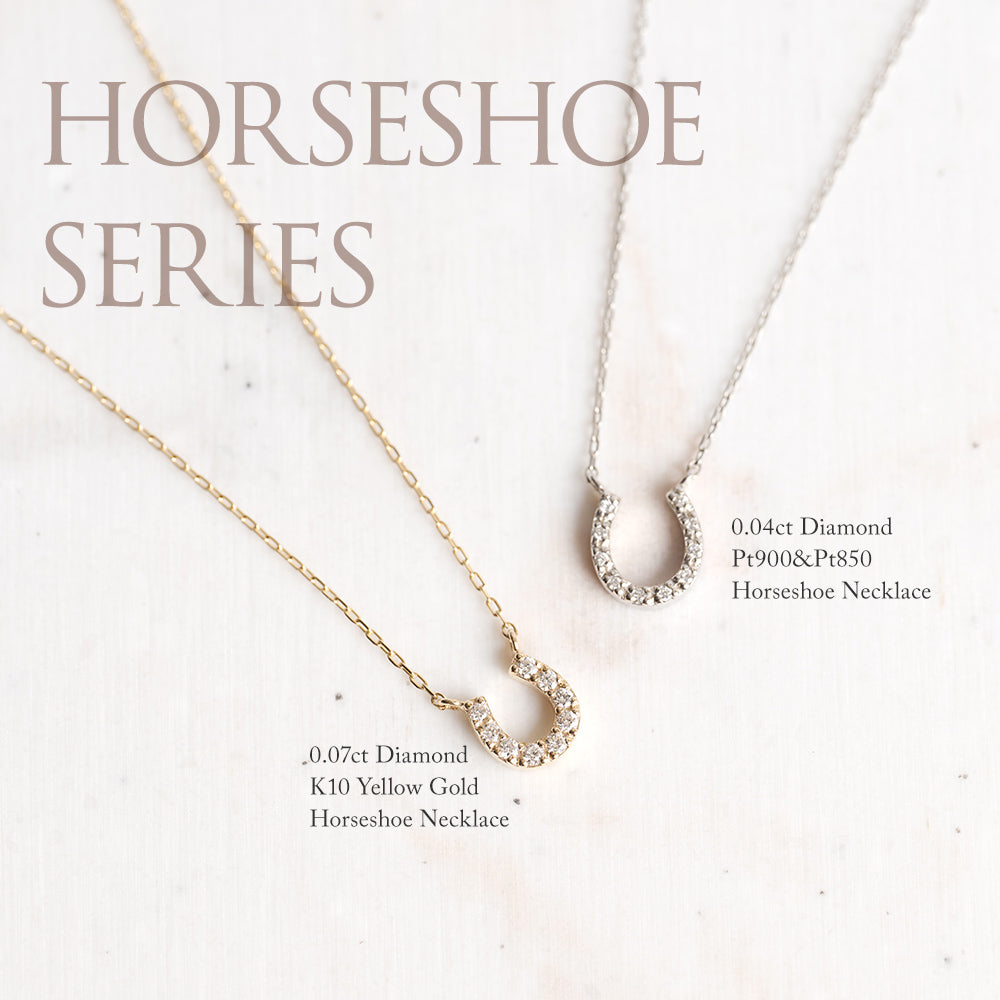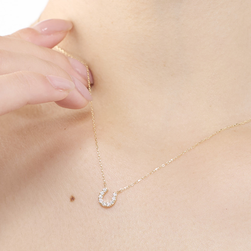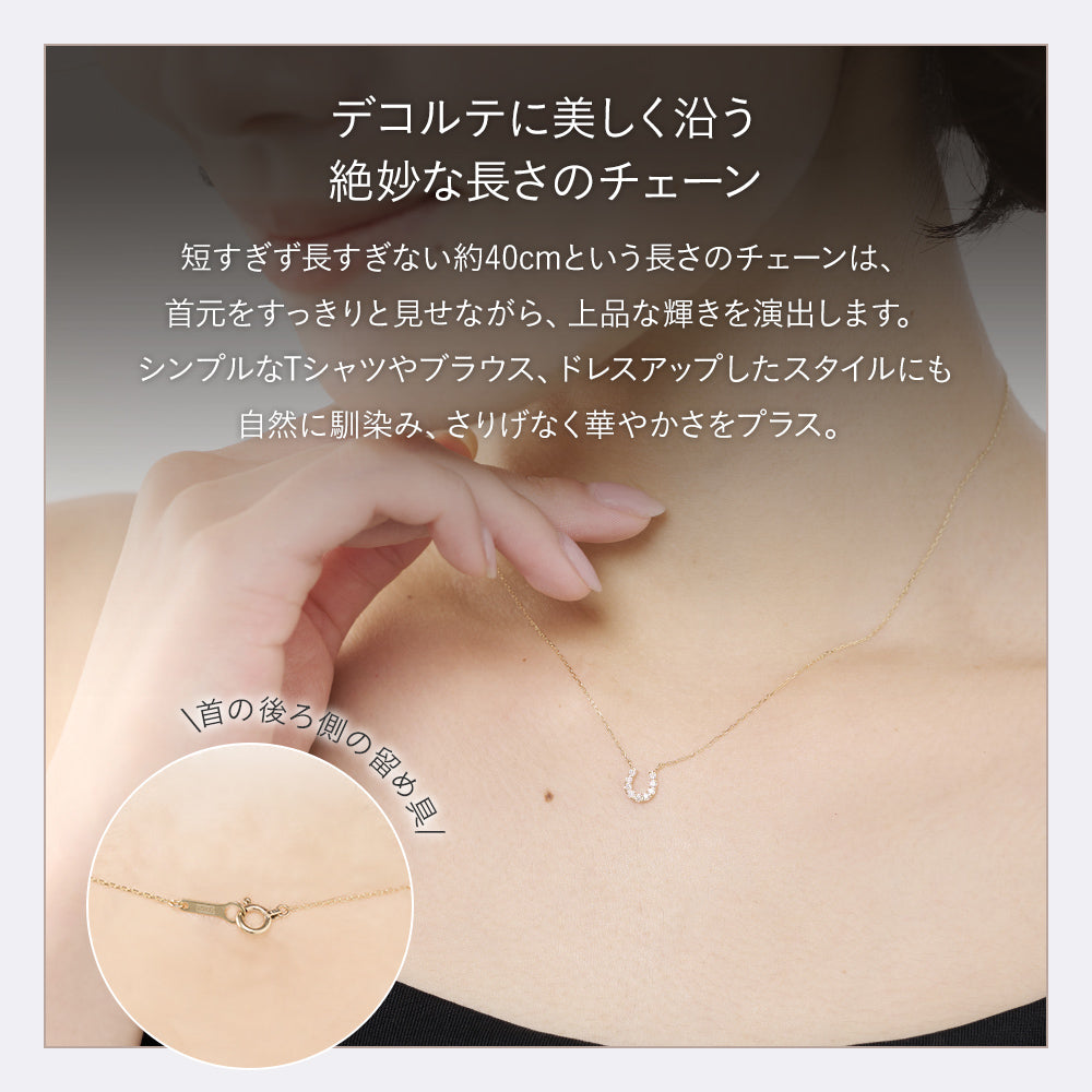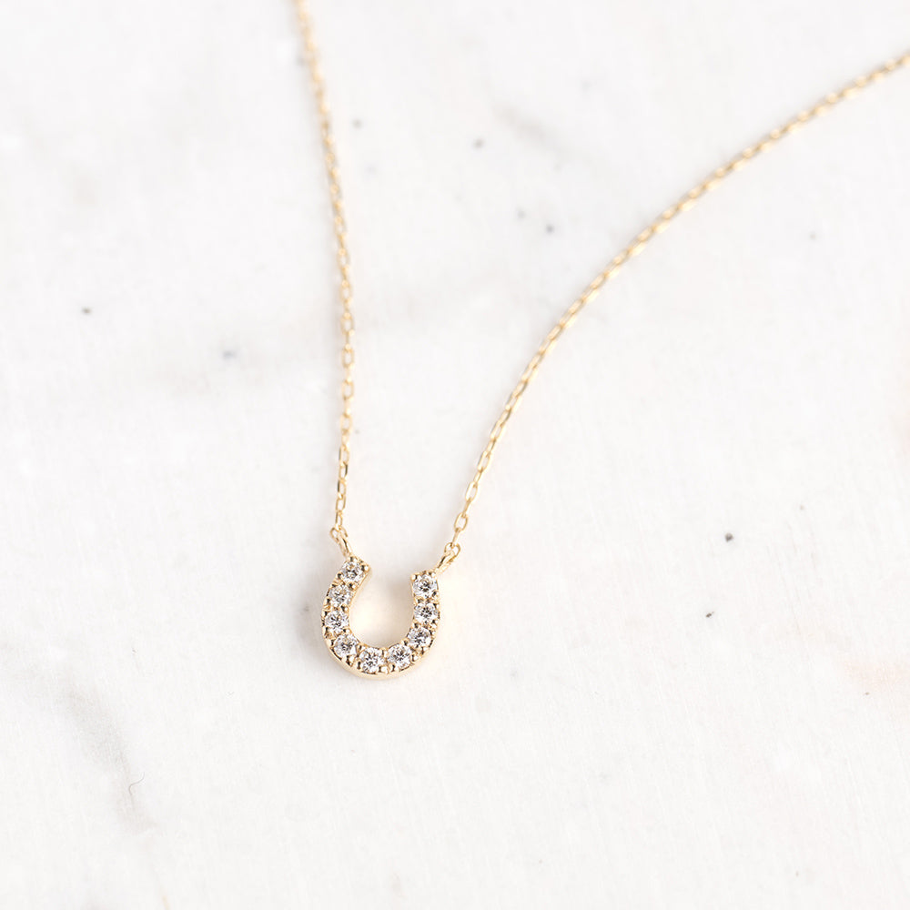 幸運を呼び込むモチーフとして愛されるホースシュー(馬蹄)を、温かみのあるK10イエローゴールドで贅沢に仕立てたネックレス。