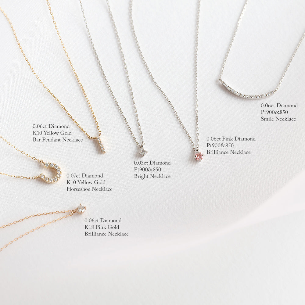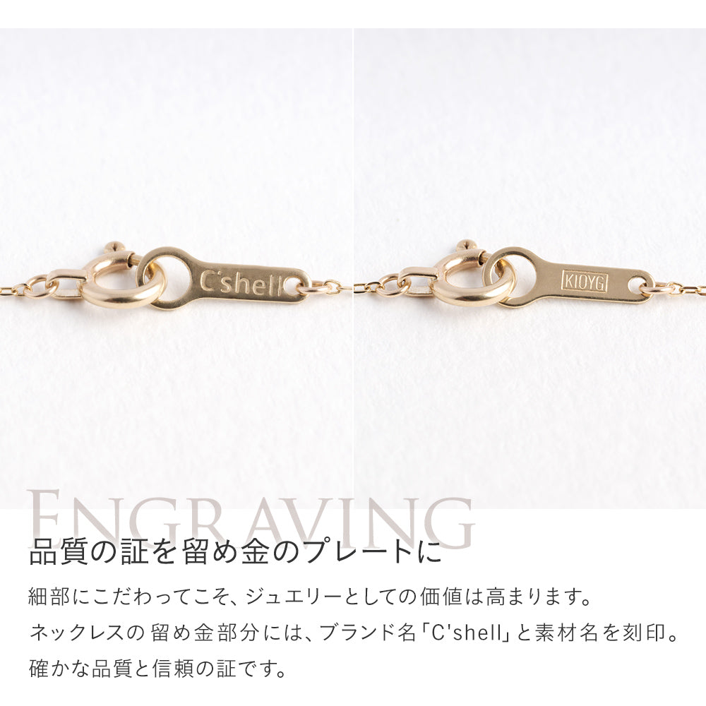 合計0.07ctのダイヤモンドを繊細にあしらい、光を受けるたびに胸元で優美な輝きを放ちます。