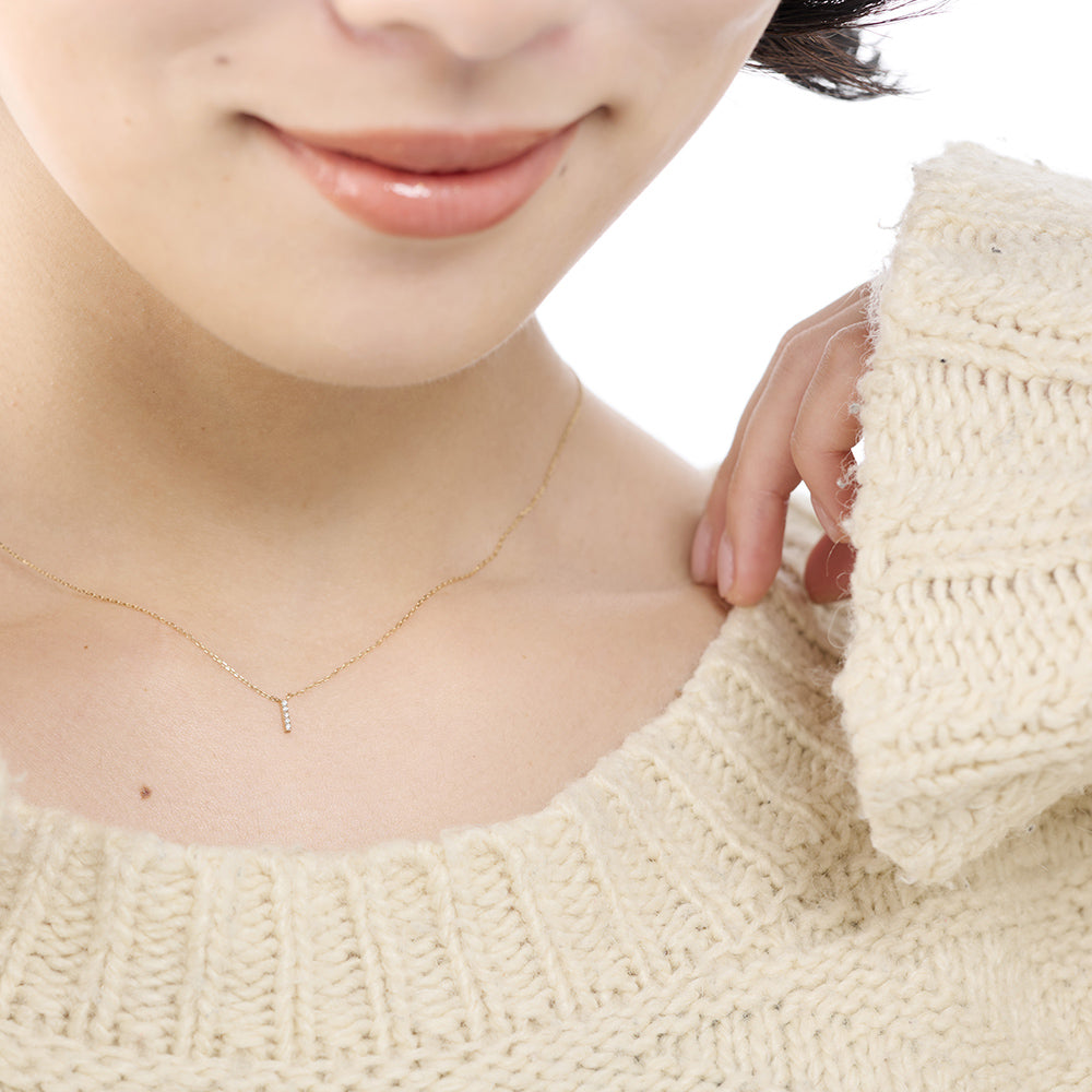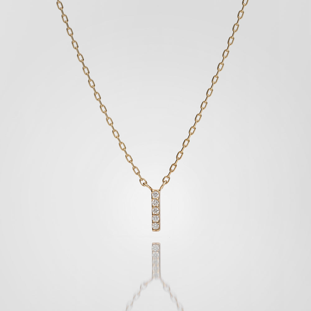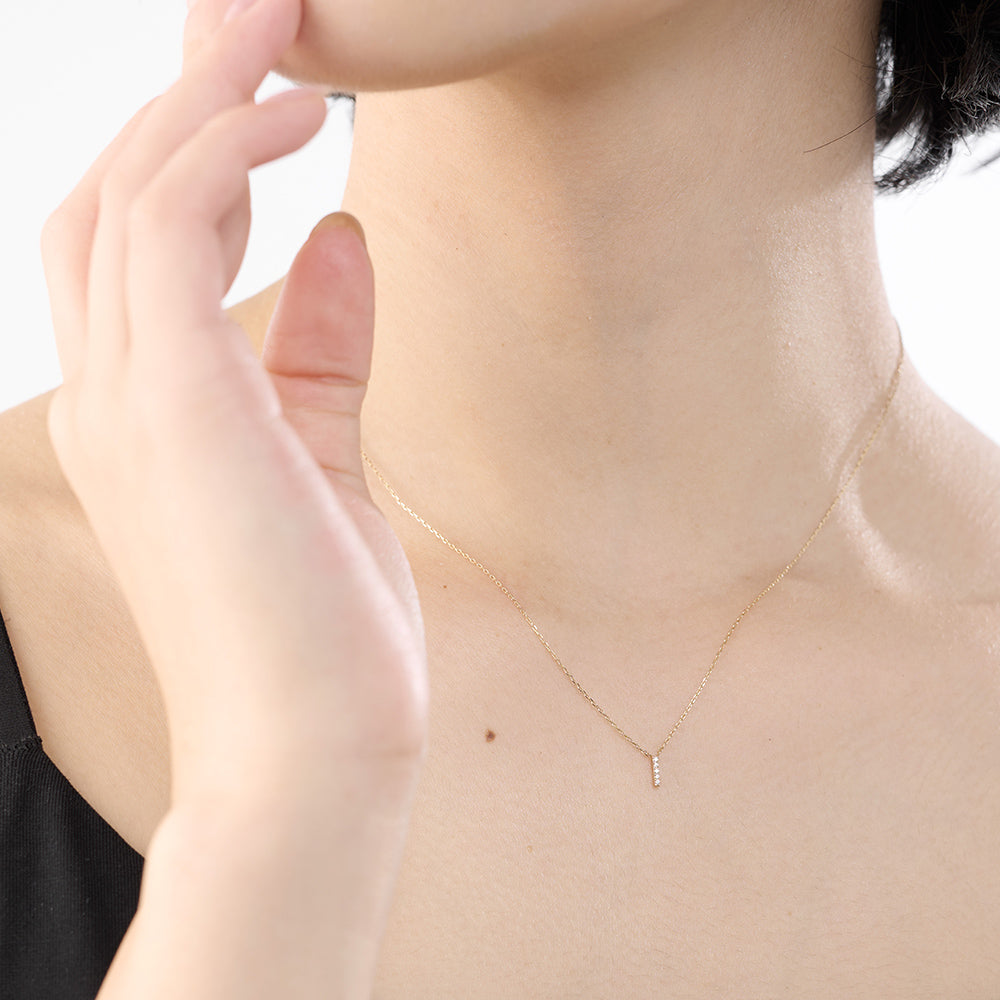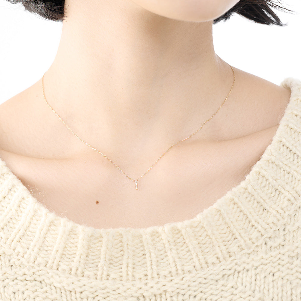 華奢なチェーンに、縦に並んだダイヤモンドが輝く上品なバーペンダントネックレス。