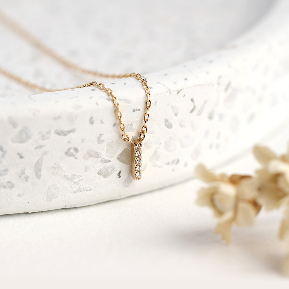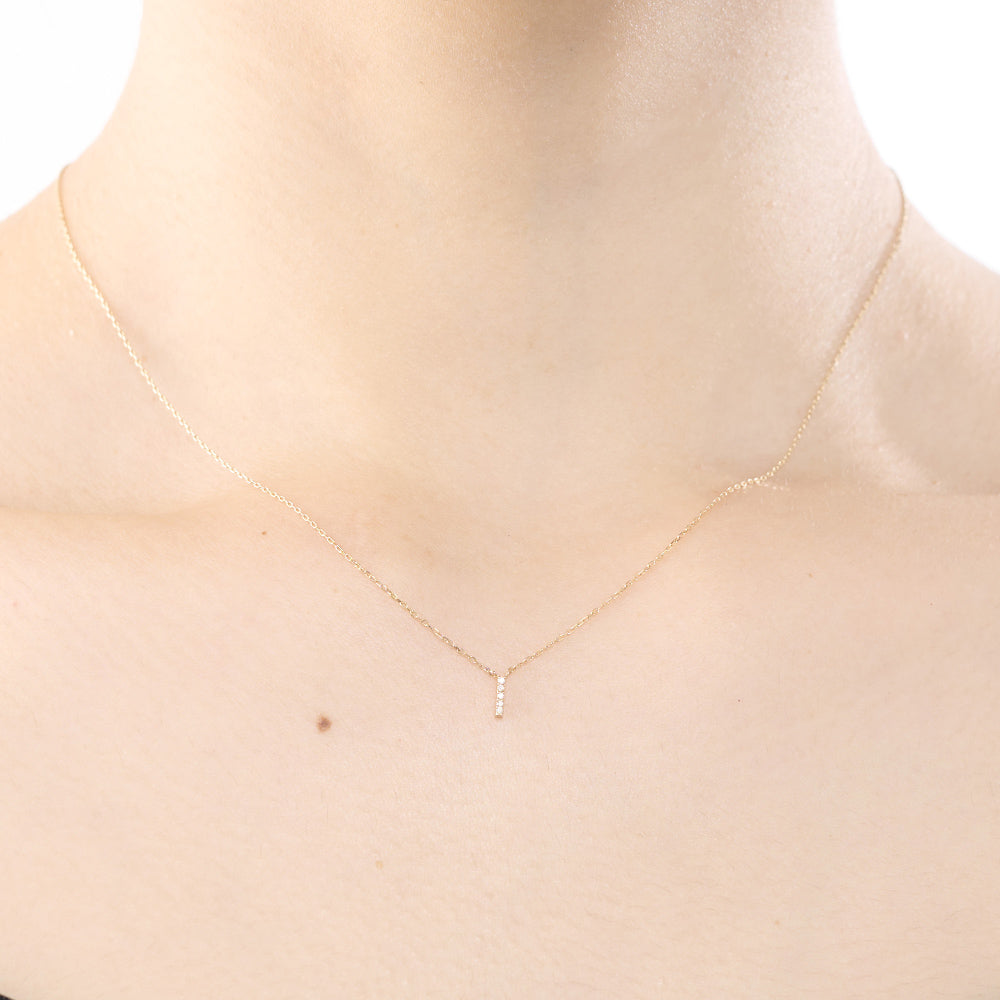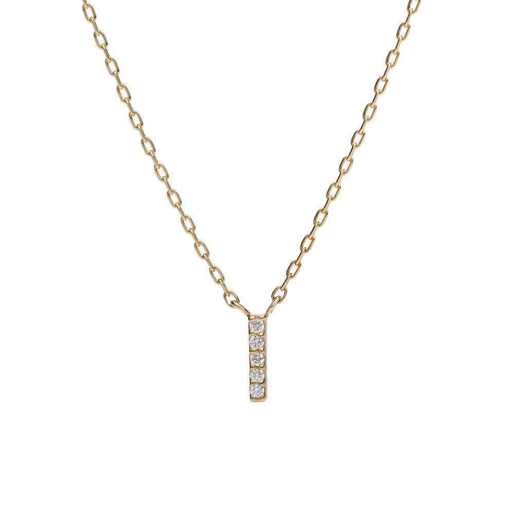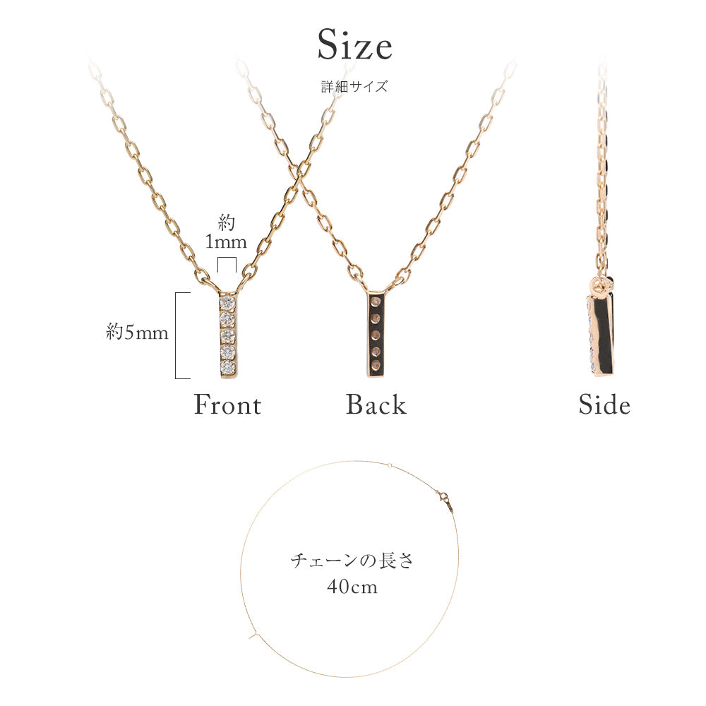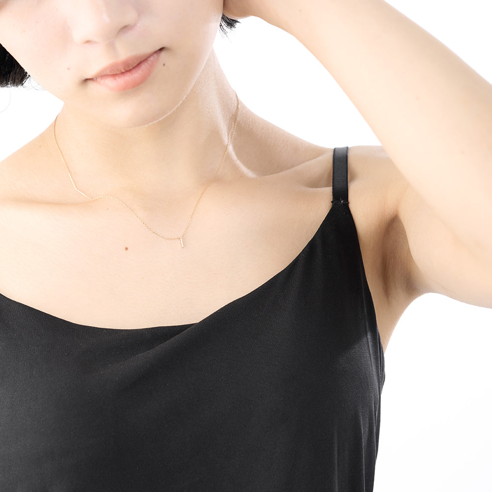 華奢なチェーンに、縦に並んだダイヤモンドが輝く上品なバーペンダントネックレス。