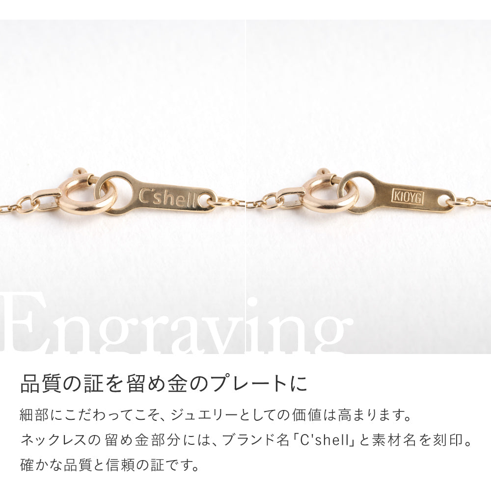 K10イエローゴールドの温かみある色味が肌を美しく引き立て、飽きのこないタイムレスなジュエリーです。