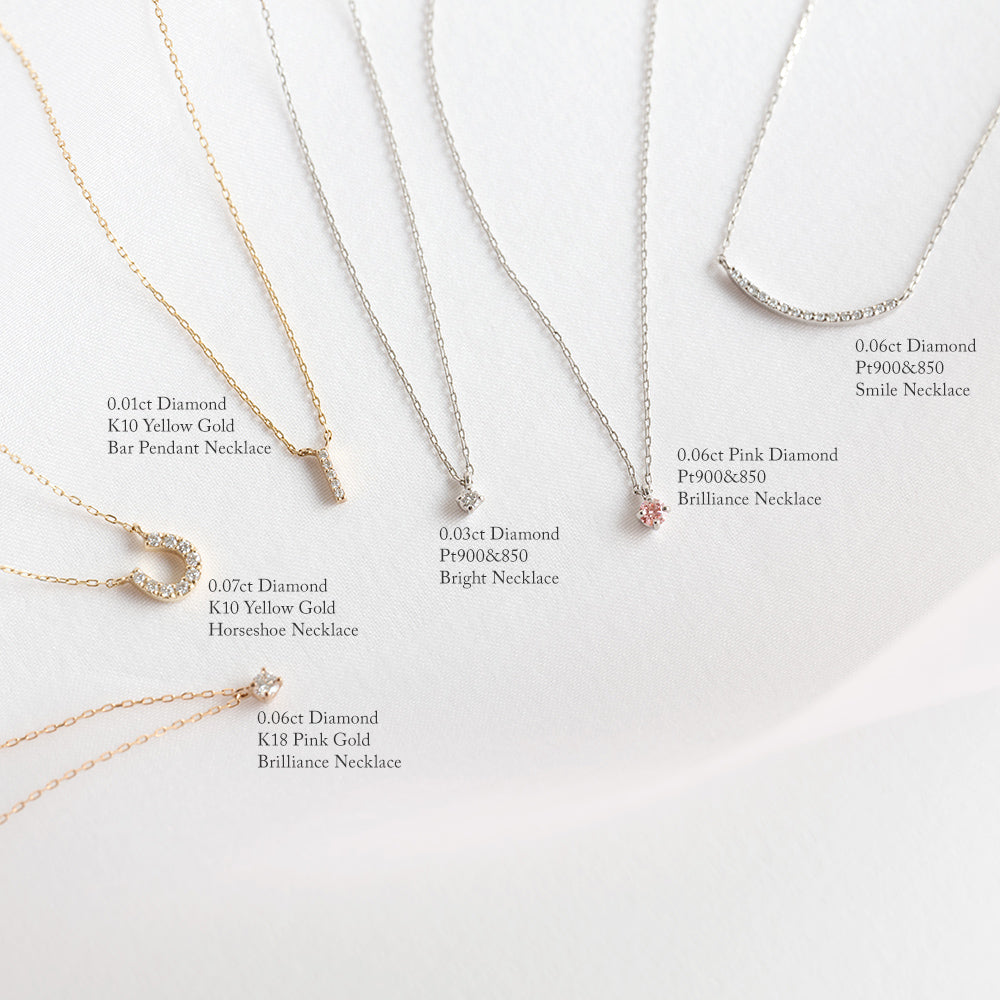 5粒のダイヤモンドが光を受けるたびに繊細にきらめき、胸元に洗練された印象を与えます。