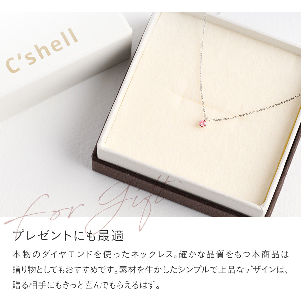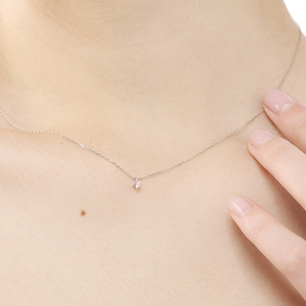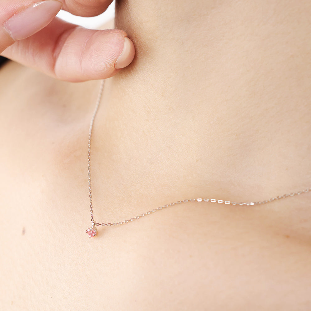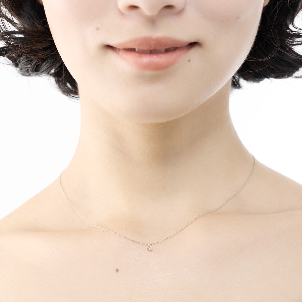 プラチナのチェーンは肌なじみがよく、軽くて着け心地抜群です。ピンクダイヤがさりげなく輝き、女性らしさを引き立ててくれます。