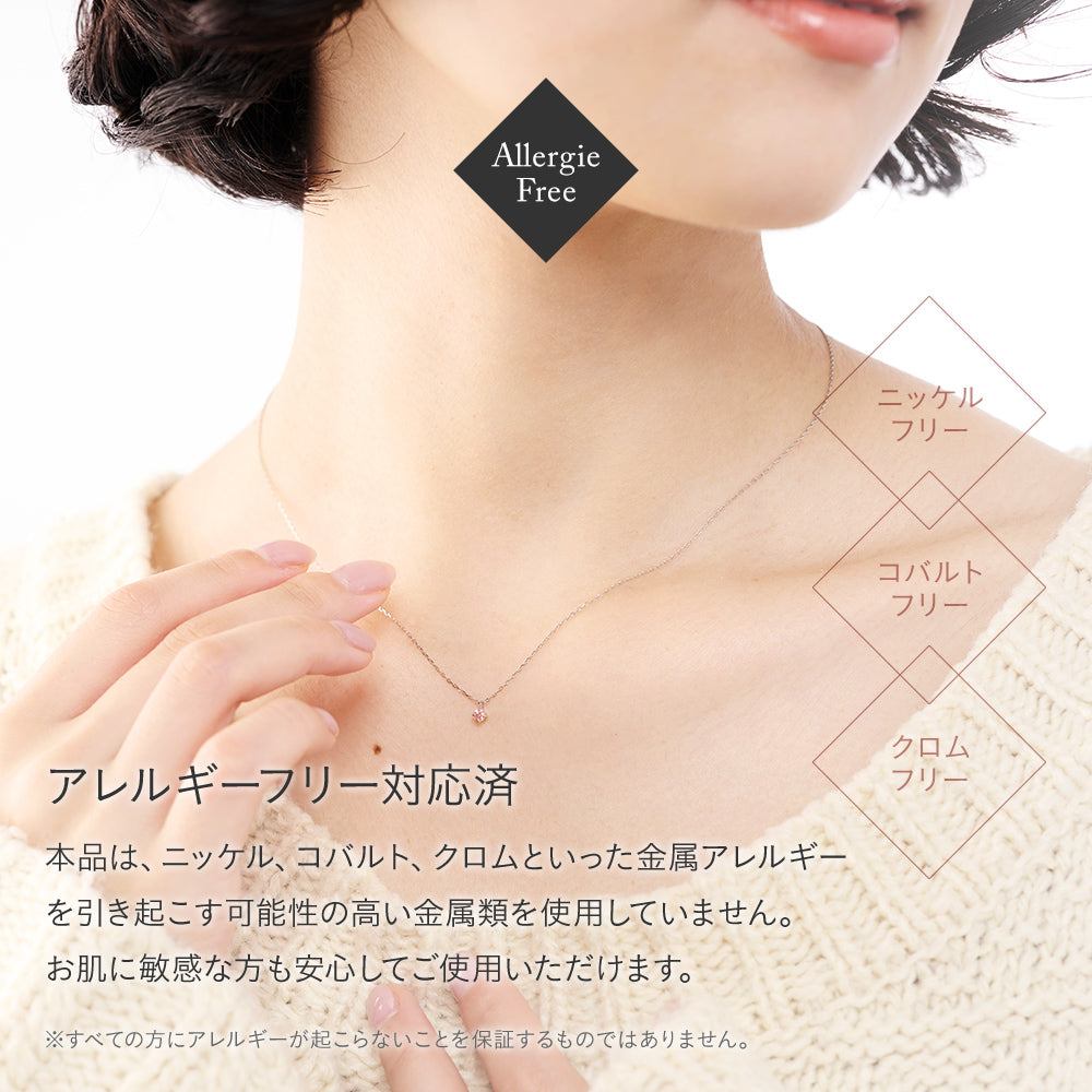 プラチナ(PT900)を利用しているため、アレルギーフリー(金属アレルギー対応)のジュエリーとなります。